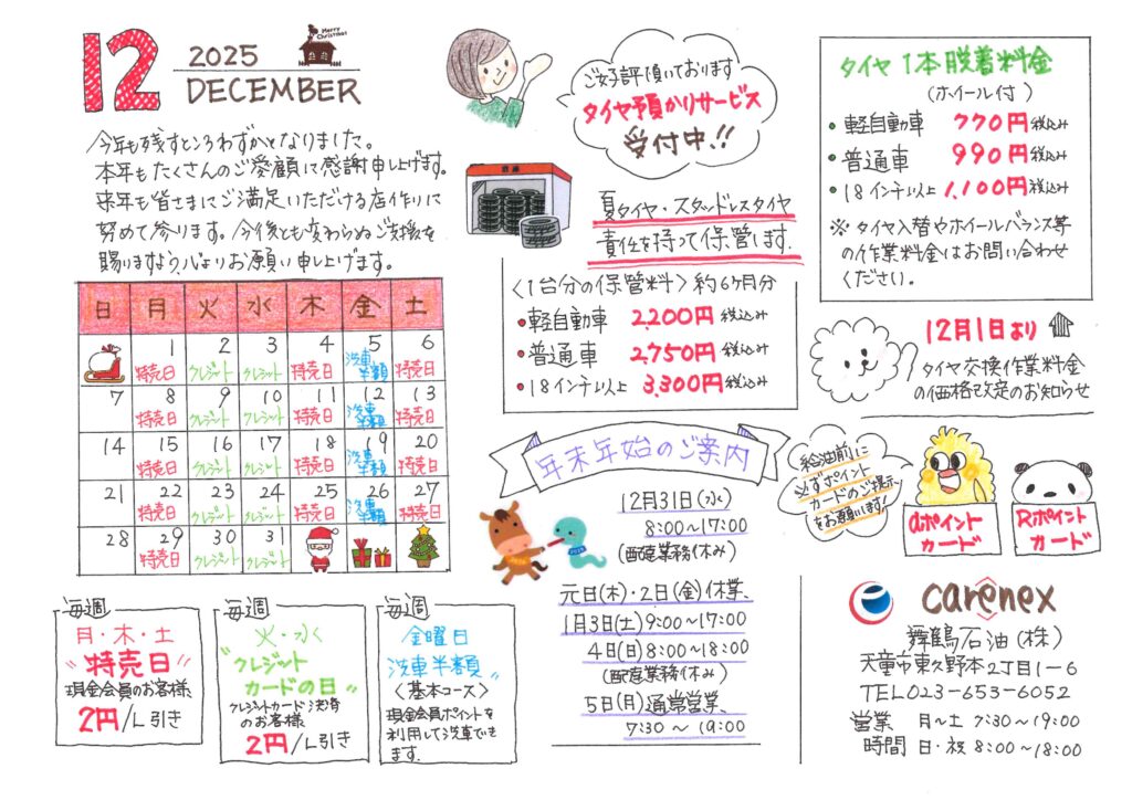いつも舞鶴石油天童SSをご利用いただきありがとうございます。